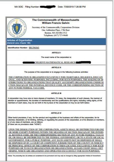 北京的孫先生一直致力于對兒童階段的數學教育,多年的思考和實踐讓他收獲頗豐,一時間覺得自己可以把多年積累到的經驗推廣到世界各地,讓更多的孩子可以受益,遂找到我司,在和我司銷售經理Eden溝通和介紹之后,決定在美國馬薩諸塞州注冊一家非營利性質的公司,未來在教育孩子方面可以更好的傳授經驗,讓更多的孩子可以在學習中輕松并且更容易掌握知識。